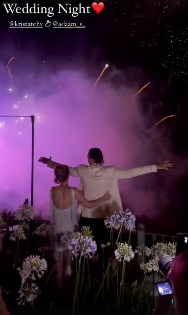 A fényűző lagzit Toszkánában tartották, ahová a pár már napokkal korábban megérkezett. A fotók és videók tanúsága szerint remek volt a hangulat a nagy napon, az este egyik fénypontja a látványos tűzijáték volt, amit Ádám és Krista egymást átölelve figyelt az erkélyről.
