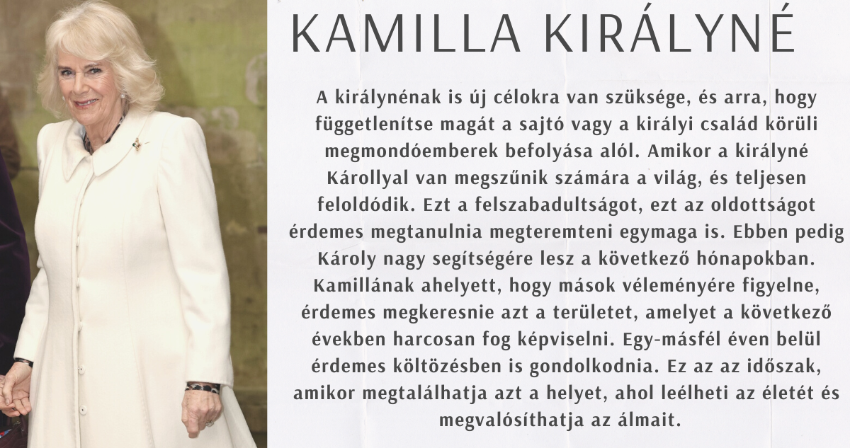 Az egész életében várakozó herceg eddig két életre szóló vágyát érte el. Ha későn is, és ha némi botránnyal és titkolózással fűszerezve is, de végül felvállalhatta élete szerelmét. És végül 2022 őszén trónra léphetett. Májusban sokakat meglepett, hogy Kamilla királynét is megkoronázták. Horoszkópjukat összevetve ez kicsit sem meglepő. Károly mindvégig Kamillával együtt látta magát a trónon, és egy percig sem tudta volna elképzelni azt, hogy másvalaki legyen a királynője.