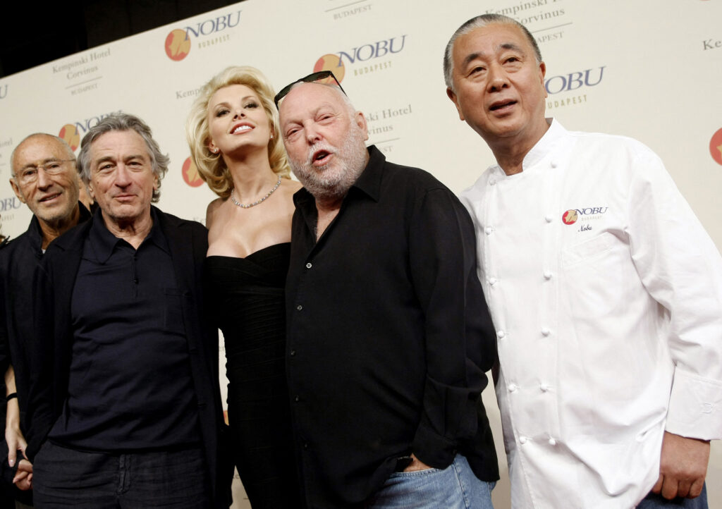 Robert De Niro, Andy Vajna és párja Éva, valamint a Nobu séfe Nobuyuki Matsuhisa, 2010-ben, az étterem budapesti megnyitóján (Fotó: FERENC ISZA / AFP)
