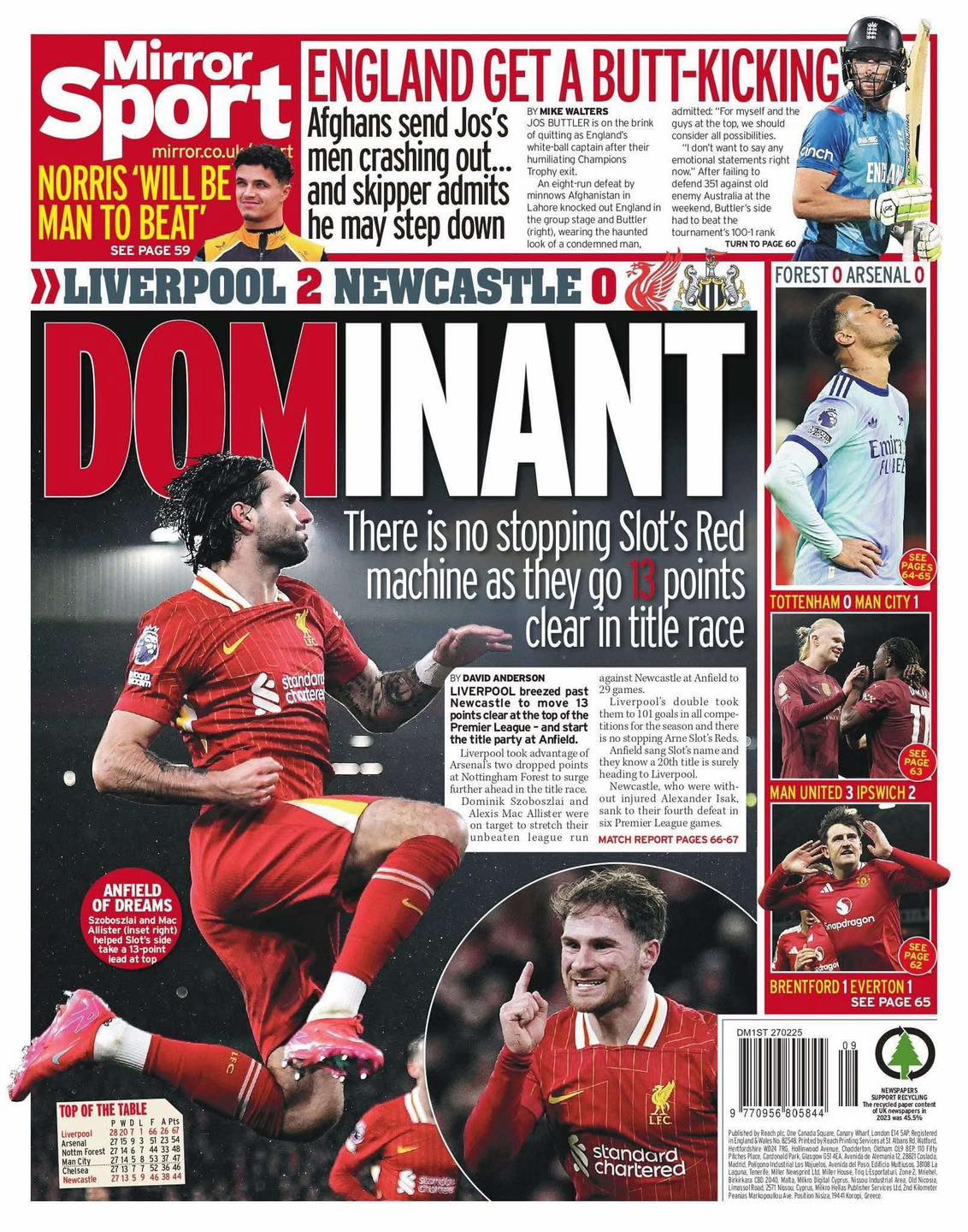Két rivális csapat, a Manchester City és a Newcastle ellen játszott pár napon belül a Liverpool, mindkét találkozót 2-0-ra nyerték meg, és mindkét meccsen lőtt gólt a ma már klasszisként emlegetett magyar, a City ellen pedig még egy gólpassz is került a neve mellé. Nem csoda hát, hogy a sporttal foglalkozó szaklapok címoldalain Szoboszlai van.