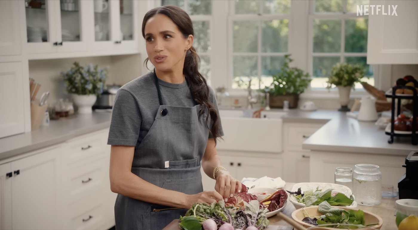 És ez most nem arról szól, hogy ki szereti Meghant és ki nem, hanem arról, hogy ennyi végtelen közhelyet, és butaságot ritkán hall az ember. Mert tényleg, amikor Meghan új saját, receptjeként adja el a paradicsomos tésztát, vagy a vajkrémes-lekváros tortát, akkor – függetlenül a szimpátiától – az ember csapkodja a homlokát, hogy ilyen klisés, Instagram-posztokat idéző műsor aztán tényleg nincs.