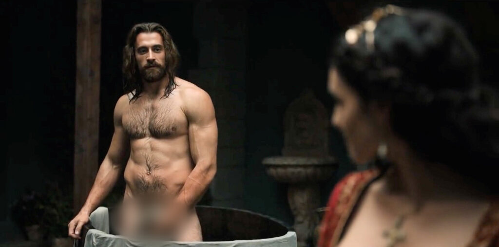 22:06 – 24:21 Murád és Brankovics Mara fürdőznek, de csak az oszmán szultán meztelenkedik – félmeztelenül terpeszkedik Mara lábai közt, aki hosszú ruhában ül a medence szélén.