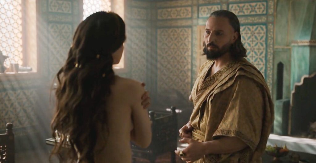 25:18 – 26:40 Mara a szultán parancsára meztelenre vetkőzik és igyekszik Murád kegyeibe férkőzni.