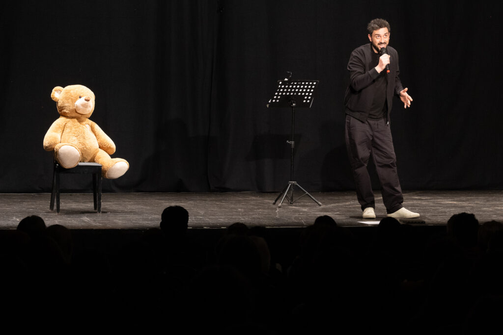 Igazából nem is a személyről, hanem az ilyen típusú működésről beszélek, ezért a személy kiléte nem fontos. És beemeltem a gyerekemet is, de teljesen ártalmatlan formában. A pókos sztori valóban megesett a kislányommal. Kicsit sajnálom, hogy a fiamról nincs benne történet, de nem találtam benne a helyét. De lehet, hogy a huszadik előadásban már lesz. És persze az is ott van, hogy a legtöbb stand up történetnek van igazságalapja, de nem feltétlenül maga az igazság.