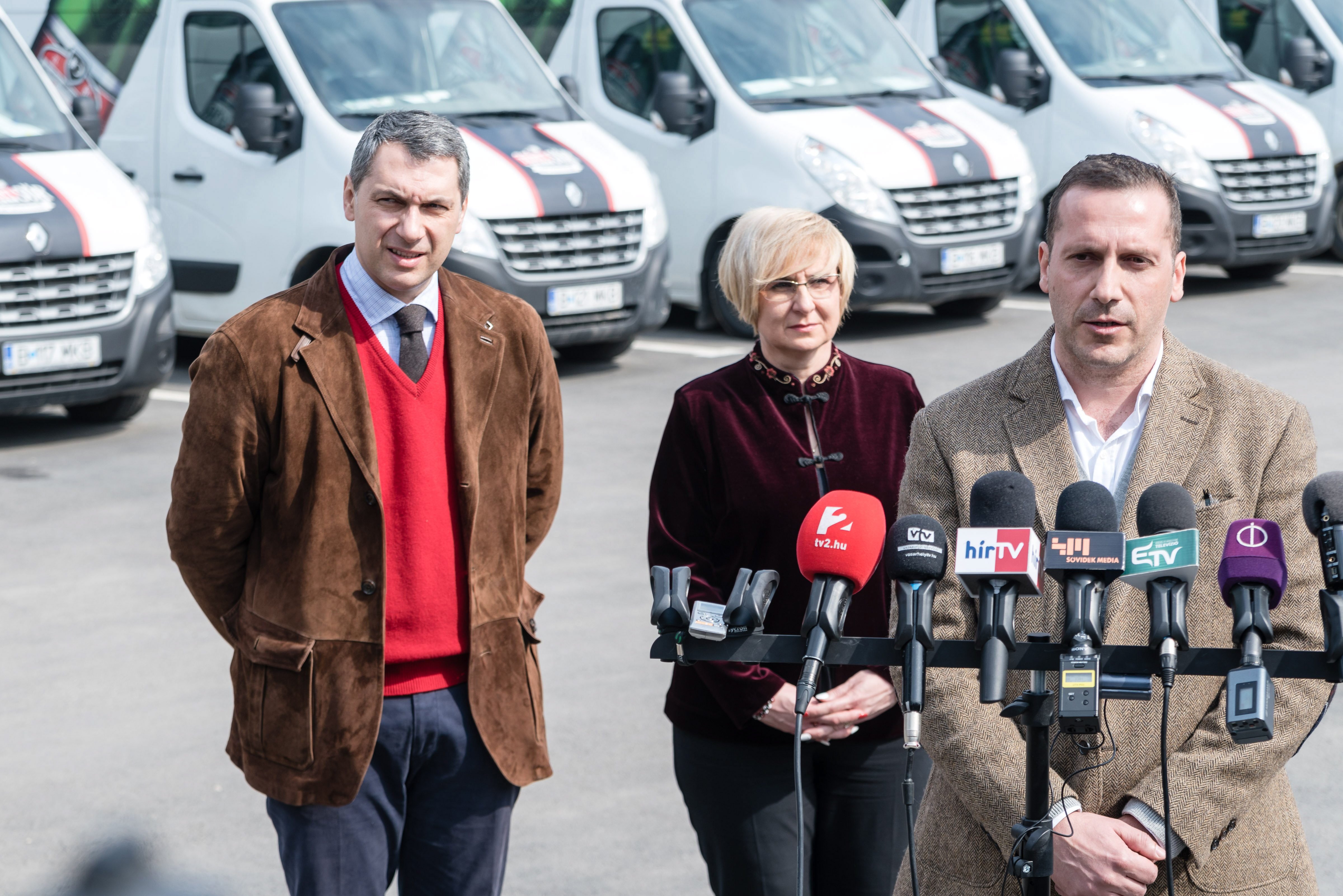 Lénárd András, a Csíki Sör Manufaktúrát üzemeltetõ Lixid Project Kft. akkori vezetõje (j), Bálint Gabriella hódmezõvásárhelyi önkormányzati képviselõ (k) és Lázár János Miniszterelnökséget vezetõ miniszter az Igazi Csíki Sört gyártó csíkszentsimoni sörfõzdében tartott sajtótájékoztatón 2017. március 24-én.