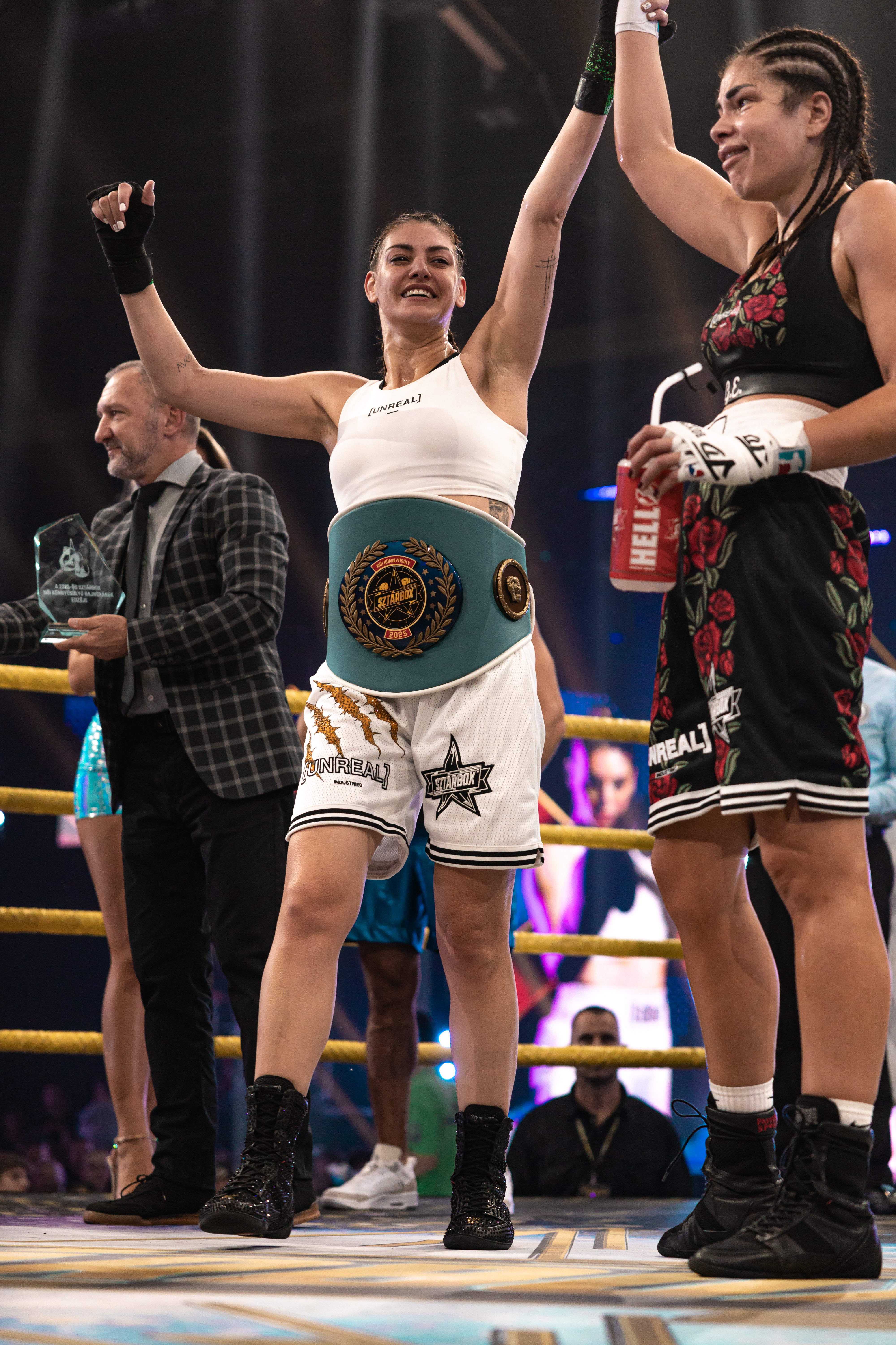 A hölgyek versenyében Gáspár Evelin és Kulcsár Edina összecsapása négy menetben zajlott és többségi döntetlent eredményezett, ahol a bírók Kulcsár Edinát jelölték győztesnek, így a négygyermekes exszépségkirálynő derekára került a bajnoki öv.