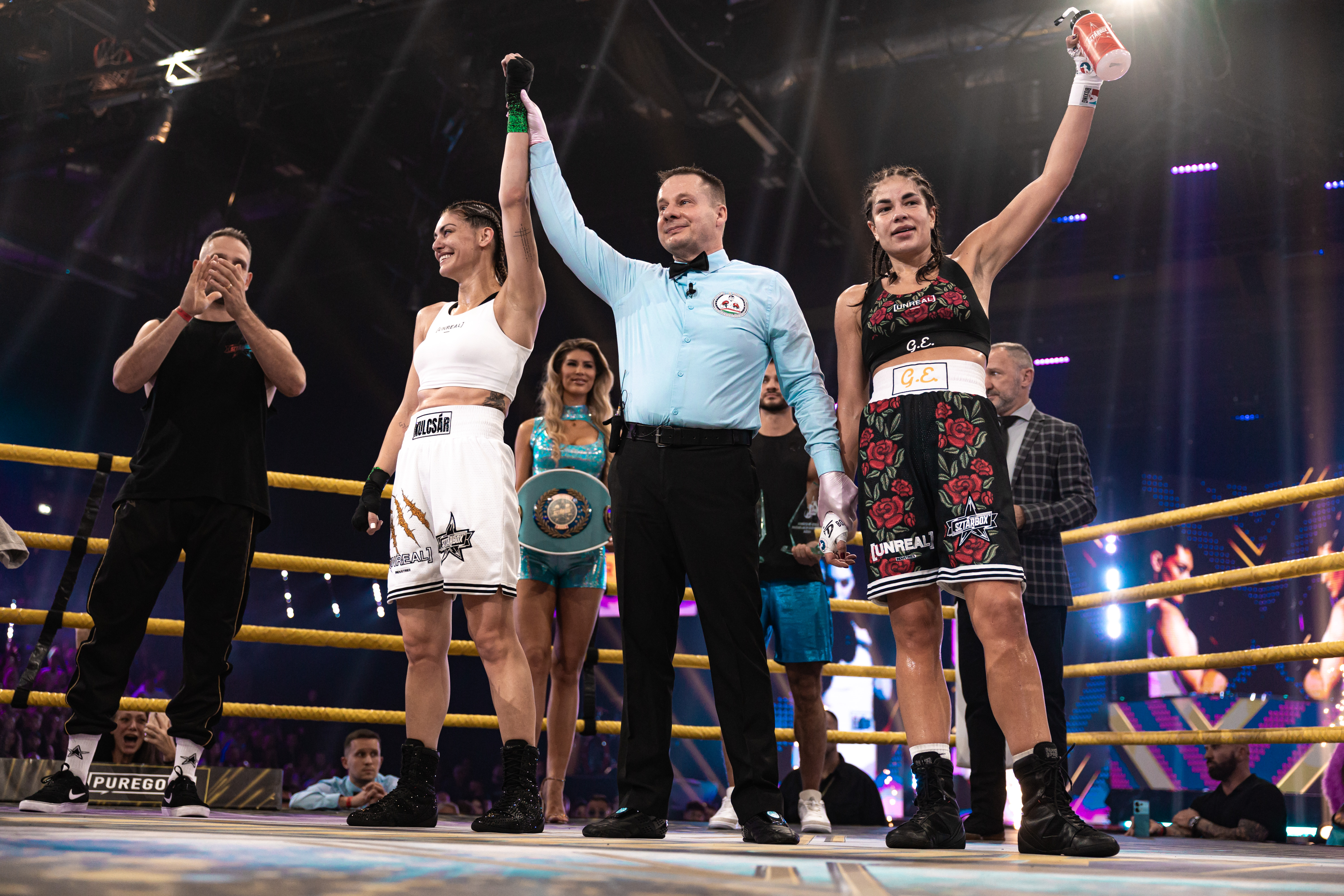 A hölgyek versenyében Gáspár Evelin és Kulcsár Edina összecsapása négy menetben zajlott és többségi döntetlent eredményezett, ahol a bírók Kulcsár Edinát jelölték győztesnek, így a négygyermekes exszépségkirálynő derekára került a bajnoki öv.
