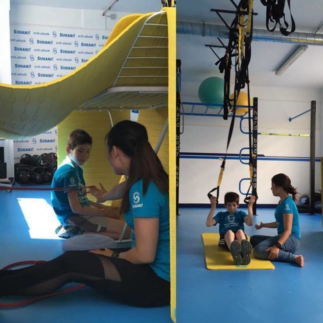 A SUHANJ! Fitnessben épp egy autista kisfiú személyi edzése zajlik (Fotó: SUHANJ! Alapítvány)