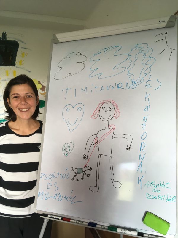 Először úgy lettem ismert a faluban, mint ‘a kutyás tanárnéni’, mert Kántor mindig velem van, sosem mozdul el mellőlem. Egyszer az egyik másodikos gyerekem fel is csattant érte a többiek előtt: ‘ha a Timi nénit nem is tisztelitek, legalább a kiskutyát tiszteljétek meg! Iszonyú cuki volt” – meséli Tímea.