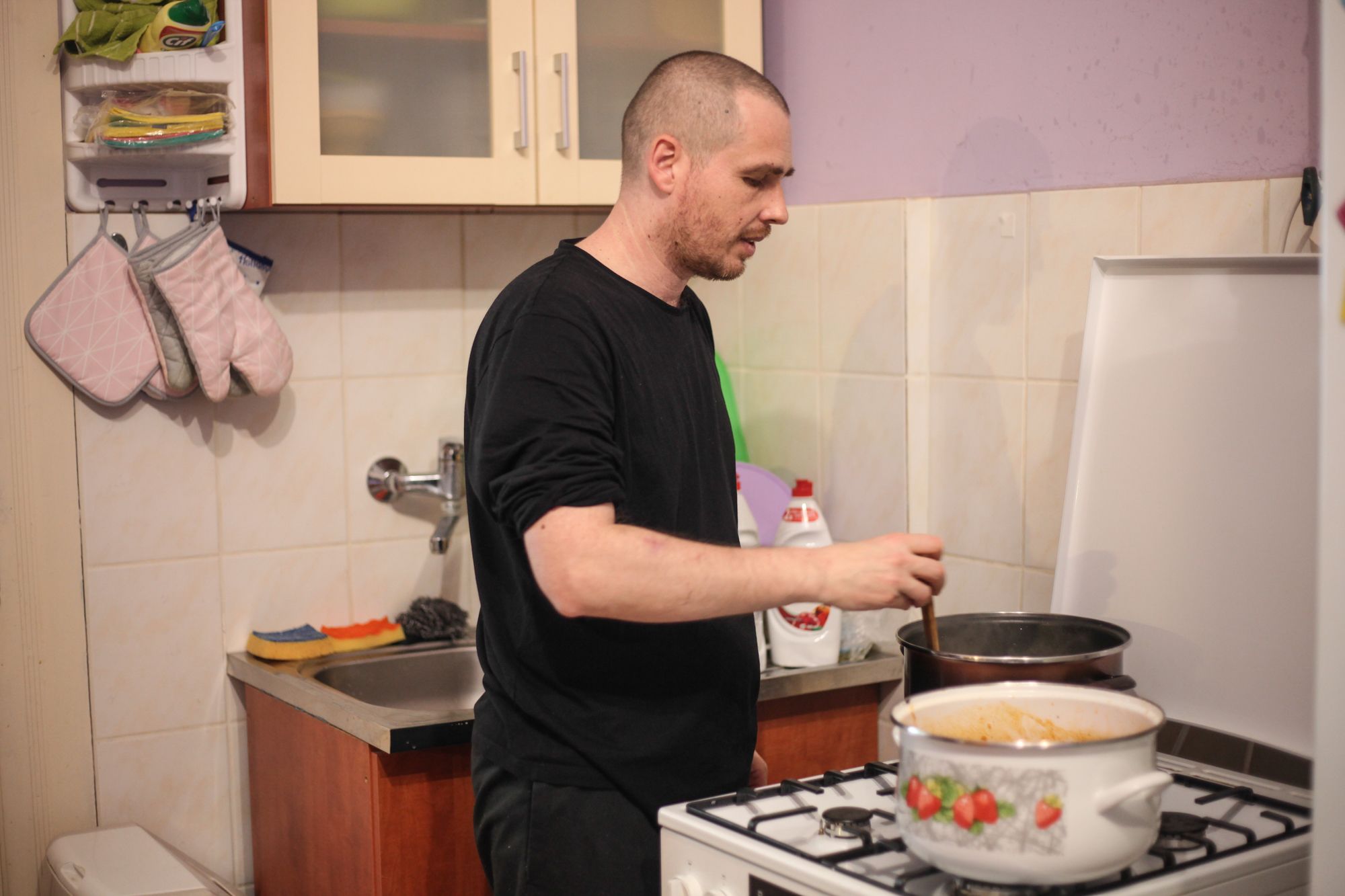 Laci főz, és almát pucol a kisfiúnak, míg beszélgetünk (Fotó: Hernád Géza)