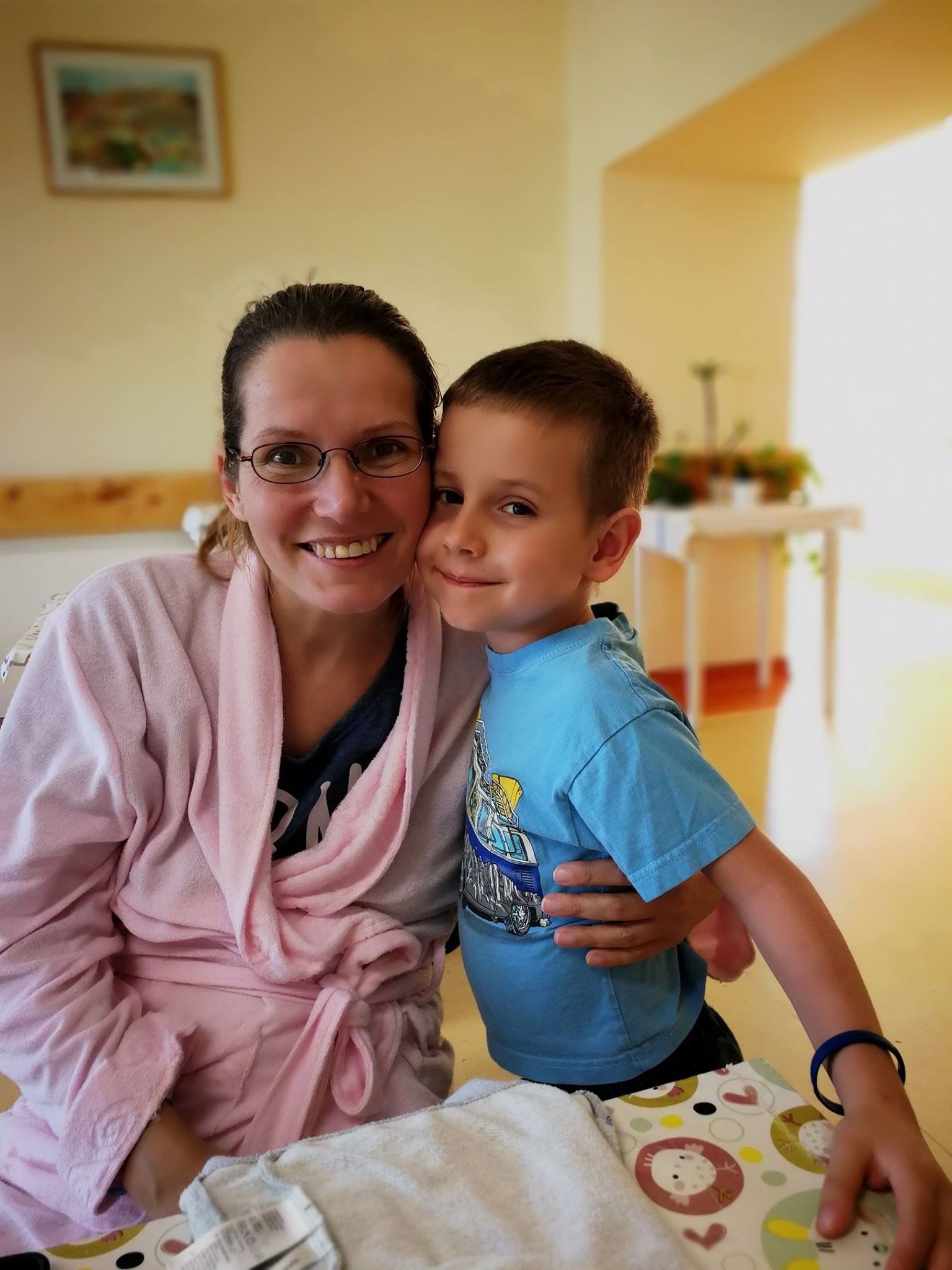 „A kisfiam nagyon anyás. Elmondtuk neki, hogy egy ideig bent kell majd lennem a kórházban, de minden rendben lesz, anya meg fog gyógyulni. Akkoriban állandóan velem akart aludni, az óvodából is pánikszerűen menekült, csak hogy velem lehessen. Többször bepisilt, tüsszögött, lefogyott. Igaz, meg is nyúlt azon a nyáron, és sok folyadékot is ivott, ezért nem jöttem rá rögtön, mi a valódi baj. Végül a laboreredmény kimutatta, hogy 1-es típusú diabétesze van, amivel kórházba került. Inzulinpumpára tették, természetesen végig ott voltam vele. Egy 18-i napon mentem haza onnan, 19-én pedig befeküdtem a saját operációmra.”