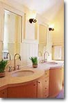 Ha magas a fürdőszoba, esztétikus és praktikus megoldás az álmennyezet vagy egy nagy helyigényű, függő fényforrás. Ötletes megoldás olyan polc készítése a mosdó fölé, amelybe besüllyesztett spotlámpákat építünk be. Így a magas tér felső része világítás hiányában kevésbé hangsúlyos, és még tárolóhelyet is nyerünk. Ha a mennyezet alacsony, ne függő, hanem mennyezetre simuló lámpákat használjunk. A többi fényforrást is a világos színűre festett mennyezet felé irányítsuk.