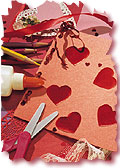 A vörös kartonból, vágj ki egy csinos kis szívet. Díszítésnek tegyél bordó temperát enyhén nedves szivacsra, és így nyomkodd a festéket a kartonra. Amikor már elég romantikusnak (foltosnak) hat, akkor hagyd, hogy megszáradjon.