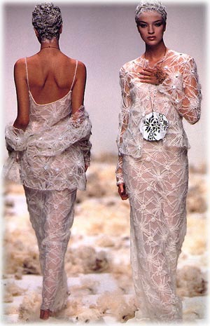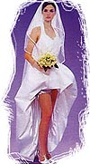 Azok a leendõ menyasszonyok, akik se klasszikus fazonú, se egyszerûbb, kosztümszerû esküvõi ruhában nem tudják elképzelni magukat, egyedi, extravagáns kreációban mondhatják ki a boldogító igent.