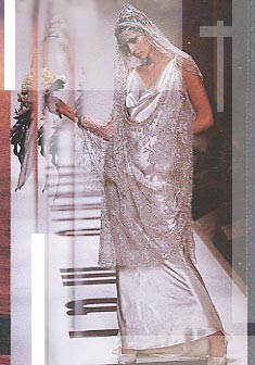 Egy nem mindennapi öltözék-kiegészítővel is extrémmé tehető az esküvői megjelenés. A fátylat, uszályt és kapucnit ötvöző ruhadarab a vállpánt nélküli, szűk ruhát egyedivé varázsolja.