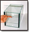 Ha a terrárium mellett döntesz, mindenképpen üveget válassz, mert az ellenáll a rágcsálásnak, bár egyes példányok előszeretettel dézsmálják meg az üveglapokat összetartó ragasztódarabokat is. Ez gyakorlatilag annyit jelent, hogy akváriumod elveszti víztartó képességét, elfelejtheted tehát, hogy az akvarisztika lesz a soron következő hobbid. Üvegből készült terráriumot már kb. 70-100 Ft/liter áron (20-30 literes akvárium már kényelmes otthonként szolgálhat) beszerezhetsz bármelyik kisállat boltban, és lássuk be, hogy ekkora összeg miatt még nem kell bankot rabolnod.