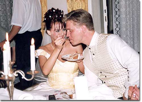 A lakomára – más szót nem is használhatnék – a házasságkötő-teremmel szemközt került sor, a másodszor is boldogító igent kimondó pár még egyszer megmutatta magát az alkonyodó napnak, azután eltűnt a tágas, faragott fakorlátokkal és oszlopokkal díszített foájéban.