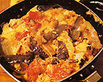A megtisztított vöröshagymát karikákra, a zöldpaprikát hosszú csíkokra, a paradicsomot cikkekre vágjuk. A kockára vágott szalonnát megpirítjuk és megfonnyasztjuk benne a vöröshagymát, majd a zöldpaprikával átpirítjuk, sózzuk, majd a paradicsomot tesszük bele és tovább pirítjuk. Végül ráöntjük a felvert, megsózott tojásokat. Kétszer, háromszor forgassuk meg a szilárduló tojást.