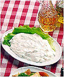 zatzikit vagyis a fokhagymával, kaporral és szeletelt uborkával összekevert joghurtot, a
