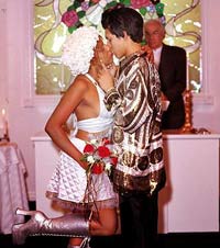 Játsszuk el, hogy az esküvőnek vége és eljött a nászéjszaka ideje. Sajnos azonban áramszünet tör ki, de a menyasszonynak elő kell készülni a fontos eseményre ebben a tökéletes sötétségben. Kössük be a vőlegény szemét és adjuk oda a „bőröndjét” amit gondosan megtöltöttünk különböző kellékekkel. Muszáj magára vennie egytől egyig, amit benne talál! Tegyünk bele mindent, ami egy nászútra kell: napszemüveg férfi alsónemű, nagy méretű női fehérnemű, kertész kesztyűt stb.(természetesen mindezeket a ruhájára ölti). Amikor elkészült fotózzuk le!