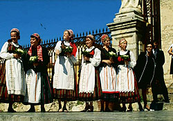 | Éva legnagyobb meglepetésére barátnői székely népviseletben, énekelve léptek a templomba. |