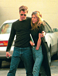 A szerelmesek 2000. július 29-én mondták ki egymásnak a boldogító igent, két és fél éves együttjárás után. A görög származású színésznőt az ügynöke mutatta be a szívtipró Bradnek. Később sokáig tagadták, hogy több lenne köztük barátságnál. Aztán robbant a bomba: Pitt eljegyezte Anistont, méghozzá nem is akárhogyan. Egy tizennyolc karátos fehér- és sárga aranyból készült, egyedi tervezésű jegygyűrűvel. Jen persze rögtön igent mondott, hét országra szóló lagzit tartottak, megvették álmaik házát. Szóval úgy nézett ki, semmi és senki nem áll boldogságuk útjába. Ám ahogy múltak az évek, a helyzet egyre kritikusabbá vált. Aniston megígérte férjének, amint befejezik a Jóbarátok utolsó szériáját, amelyért egyébként egymillió dollárt kapott részenként, beindul a baba-projekt. Nem így lett.