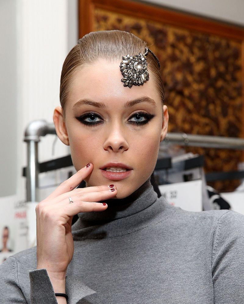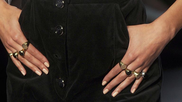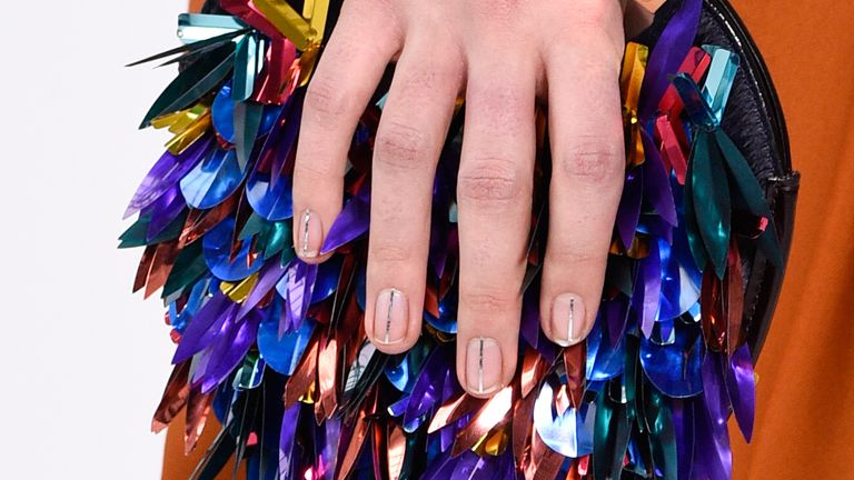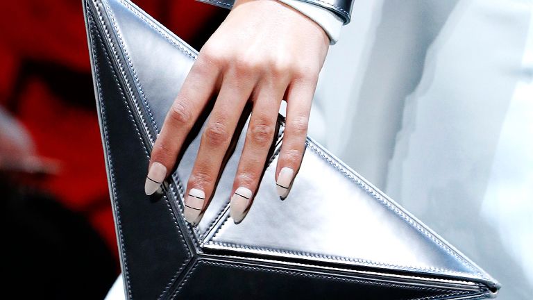 Épp csak egy picit díszesebbek, mint a nude körmök, mégis, a trendi apró vonalak, amik a Cushnie et Ochs modelljeinek körmére kerültek, igazi high eng fílinget adtak a manikűröknek. Hasonlóan látványosra sikerültek a Delpozo-bemutatóra készített variánsok is, amelyeknél a fémszínű, vékonyka dekort áttetsző körömlakkal párosították. Tracy Reese-nél a trend egy markánsabb változatával találkozhattunk, a geometrikus formák határozottabb vonalvezetést kaptak, és elmentek a negatív tér manikűrök irányába.