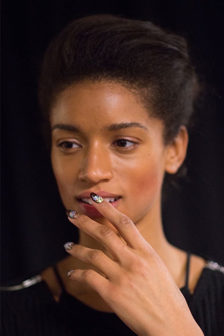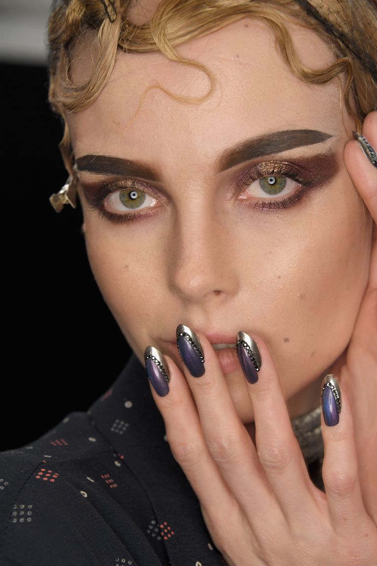 Ne fukarkodjunk a csillogással, ha a szezon legösszetettebb manikűrjére vágyunk. Variáljuk a különböző színeket és textúrákat, ne ragadjunk le az ezüstös körömlakknál. Rétegezzük, mintázzuk (na, ezt sem kell túllihegni, lásd Tadashi Shoji modelljeinél), ha pedig sötét alapra helyezzük, extrán ütős hatást érhetünk el (Naeem Khan).