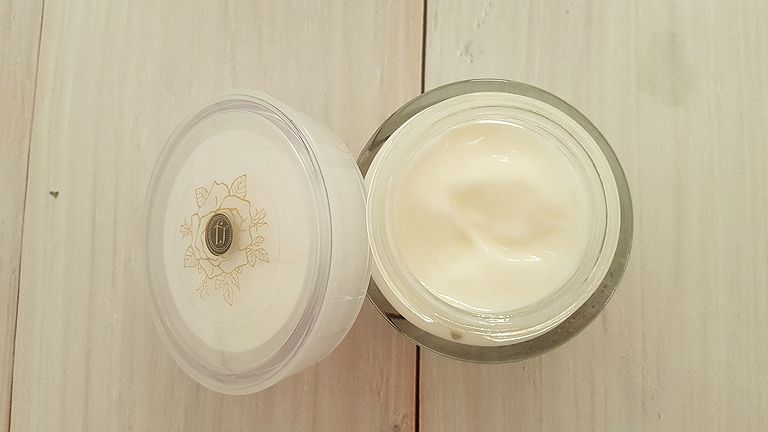 Persze a csomagolás egy dolog, fontosabb, mit rejt magában a csinos tégely, és bizony ezen a ponton volt némi fenntartásom: vajon mennyire lesz erős az illata? Belefulladok egy képzeletbeli rózsabokorba, míg felkenem a krémet? Nos, aggódásom alaptalannak bizonyult, finom, visszafogott illatú, semmi tolakodó nincs benne. A rózsaillat kellemes, amolyan púderes, ami felkenve a krémet, már nem is érződik.