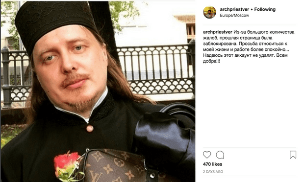 Louis Vuitton táskákról, Gucci cipőkről és hasonló luxusholmikról készült képeit posztolta az Instagram-oldalára Vjacseszlav Baskakov, orosz ortodox pap.