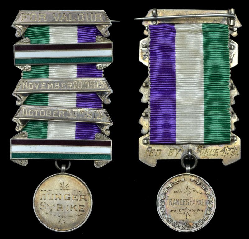 A Holloway-brosst Sylvia Pankhurst tervezte, és azok a nők kapták ajándékba, akiket börtönbe zártak a nők szavazati jogáért vívott harc során. Amikor kiengedték őket, minden alkalommal nőtársaik vártak rájuk, és átadták mártíromságuk jutalmát: ezt az ékszert. A rácsos háttér a börtön rácsait jelképezi, két oldalt a rabság láncai lógnak le róla, és persze középen a háromszínű szalag látható. Nagyon kevés maradt fenn belőle. Még kevesebb maradt fenn azokból a medálokból, amelyeket az éhségsztrájkot választó nők kaptak ajándékba.