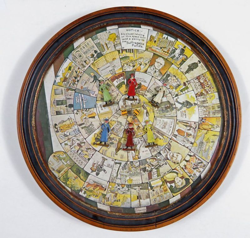 Amikor 1909-ben Herbert Asquith angol miniszterelnök visszautasította, hogy tárgyaljon a nők szavazati jogáról a mozgalom vezetőjével, a szervezet kiadta a Pank-a-Squith társasjátékot. A játék célja, hogy egy spirál alakú pályán eljuttassuk a szüfrazsett bábut az „egyetemes választójoghoz”, elkerülve az olyan csapdákat, mint a Scotland Yard detektívje, a bíróság és a börtön. Az eredeti darabokból kevés maradt fenn, és ezek ritkán kerülnek árverésre – áruk 1-2 millió forint között van. Szerencsére jóval olcsóbb modern másolatok is léteznek.