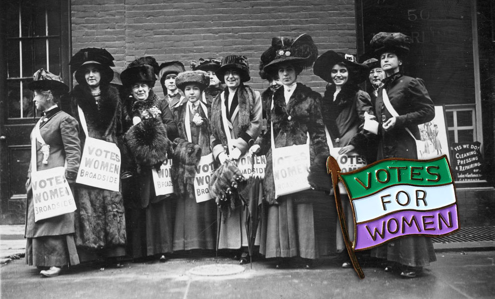 A lila, a fehér és a zöld három amúgy teljesen ártatlan és a korban egyébként is népszerű szín volt – de 1908-tól kezdve mégiscsak megváltozott a jelentésük. Aki felvette, egyértelműen jelezte, hogy támogatja a nők szavazatának ügyét. Erre pedig a mozgalom vezetői is rájátszottak, amikor a tüntetéseken részt vevő nőktől kifejezetten kérték, hogy ezekben a színekben érkezzenek. Így amikor sokan összegyűltek, szinte olyan volt, mintha egyenruhát hordtak volna, és ez sokkal egységesebbnek és nagyobbnak tüntette fel a mozgalmat.