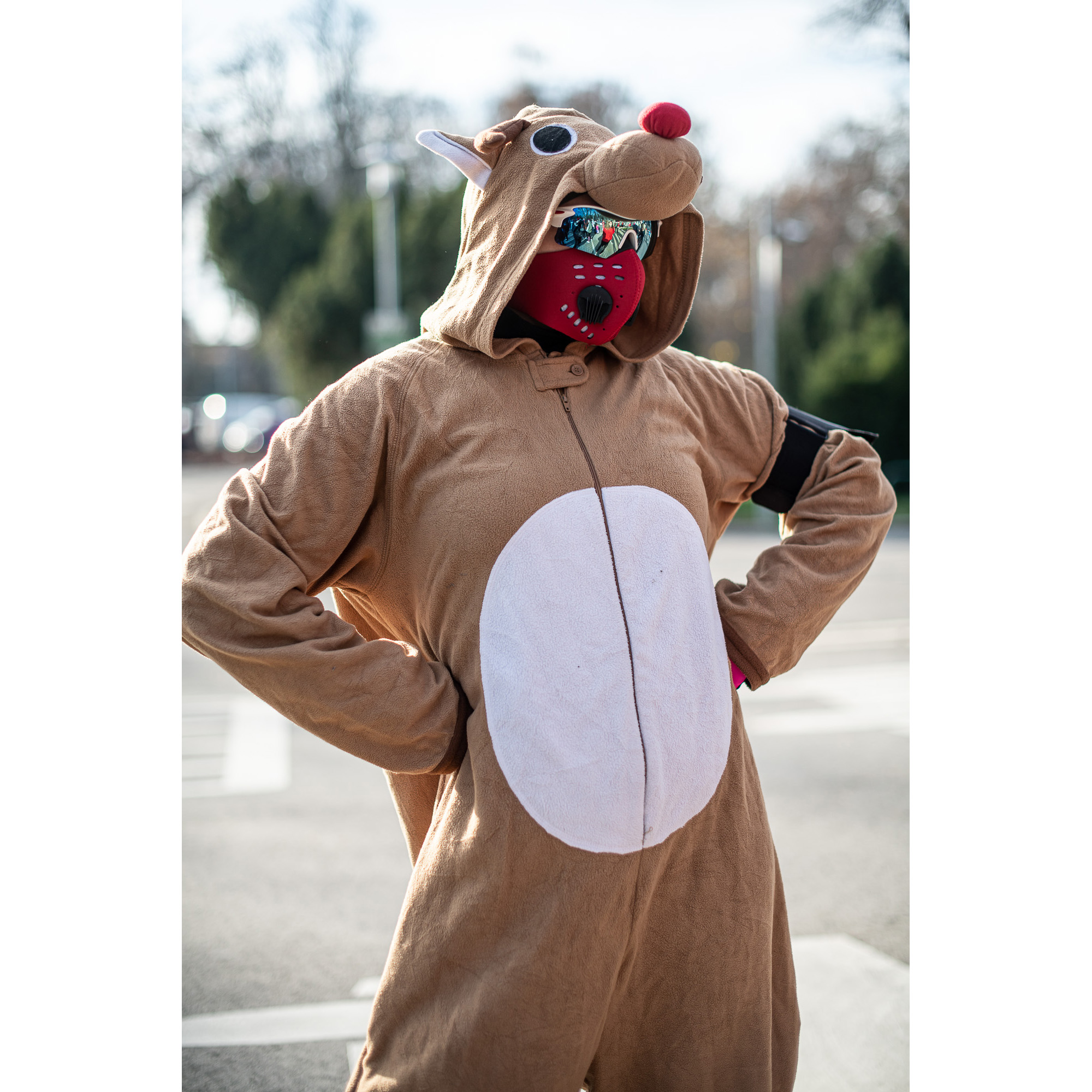 Az állatkosztüm mindenhol jól jön a Szigettől halloweenen át farsangig, csodálkozunk is, hogy rajta kívül nem gondolt rá senki. Plusz pont a sportszemüvegért és a gázmaszkért, a rénszarvas így egyszerre áraszt cyberpunk-esztétikát és karácsonyi hangulatot.