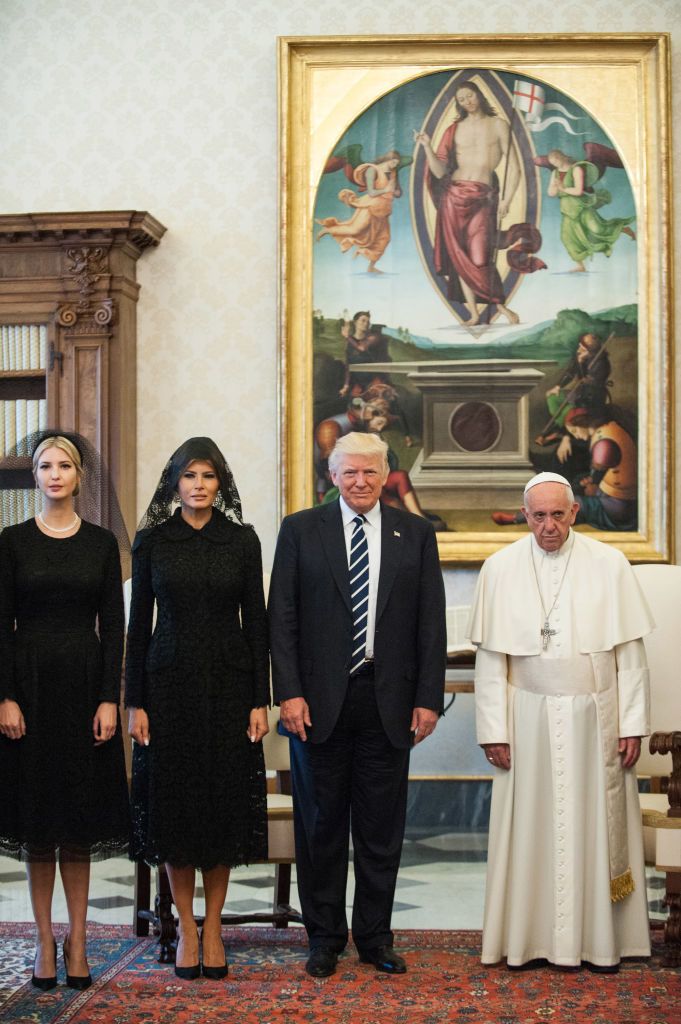 2017 tavaszán Ferenc pápa a Vatikánban fogadta a Trump család egy részét. Az eseményre Melania és Ivanka Trump a protokollnak maradéktalanul megfelelő fekete ruhát, a fejükön pedig mantillát, vagyis tradicionális csipkefátylat viseltek. Ezért is kaptak azonban kritikát, ugyanis az azt megelőző héten Szaúd-Arábiában nem tettek fel fejkendőt, holott az ottani kultúrában ez a nők esetében elvárás.