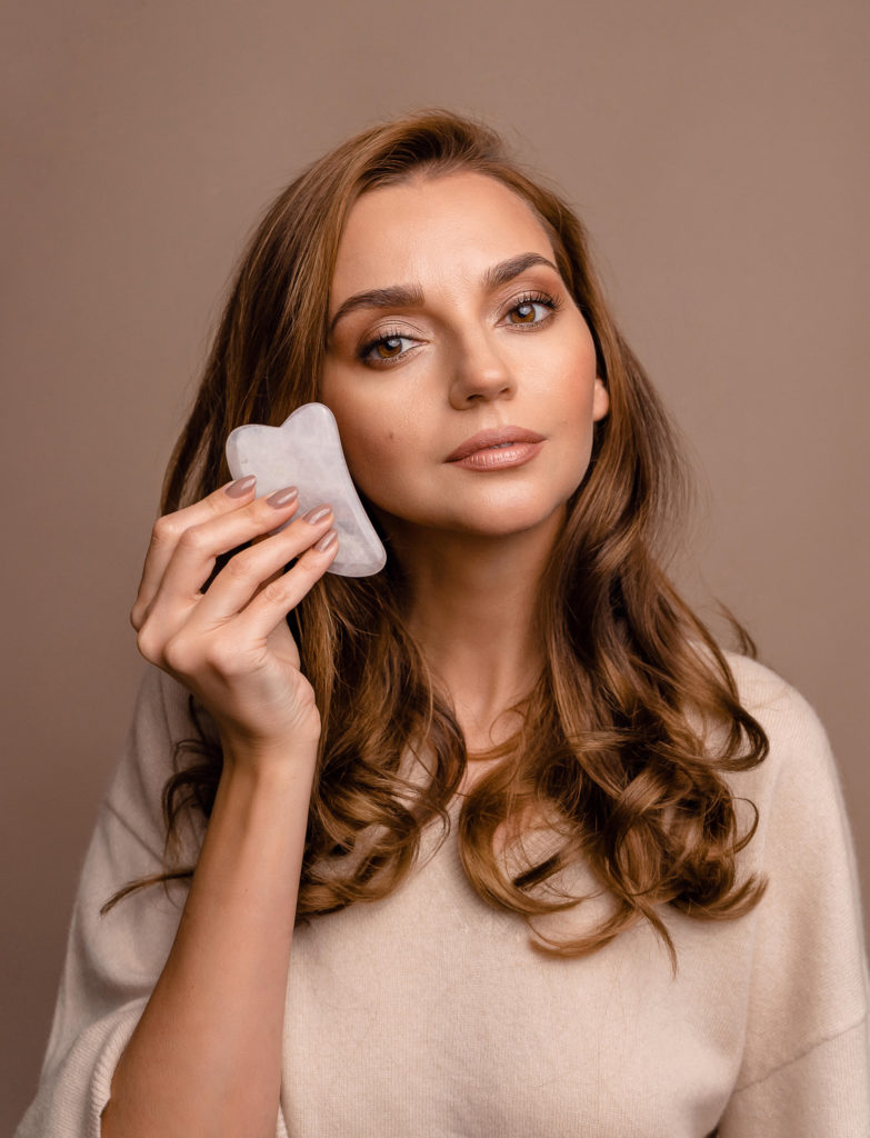 A gua sha az azonos nevű tradicionális kínai masszázs eszköze, melynek lényege, hogy a meridián-masszázson alapulva ismétlődő mozdulatokkal fokozza a meridiánokban az energiaáramlást, javítva ezáltal a vérkeringést, serkentve a nyirokkeringést. Arcon való alkalmazásáról azt tartják, oldja az izomblokkokat, csökkenti a puffadást, elősegíti a bőrsejtek megújulását, továbbá feszesítő hatással is van bőrünkre. A gua sha-t egy kis ápoló arcolaj társaságában javasolt mozgatni a bőrön, így a csúszós olajtól nemcsak kellemesebb lesz használata, de a hatóanyagokat is bele tudjuk dolgozni bőrünkbe. „Alakja miatt az arc egészét szépen át lehet vele masszírozni, a sokféle csúcsának köszönhetően változatosan alkalmazható” – mondja róla Anfisa.