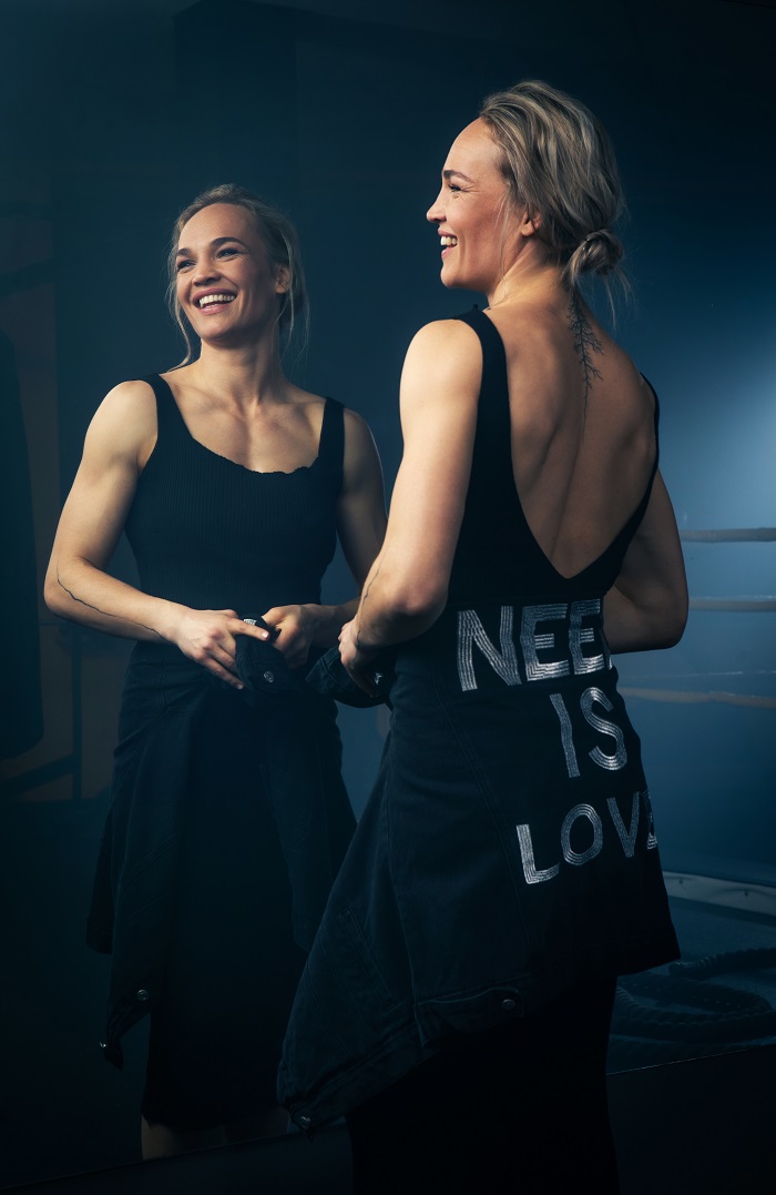 Sasha Sidorenko, az answear.LAB „No shame. No fear.” kollekciójának arca – ukrán sportoló, professzionális boxoló –, új szerepet kapott, sokkal nagyobb jelentőségűt, mint amilyet eleinte terveztünk. Ez teljesen új értelmet és célt adott az elmúlt pár hónap kemény munkájának. Most egyszerre élünk lokálisan és globálisan, tudjuk, hogy nem vagyunk erőtlenek és mi is tehetünk valamit az ukrán emberekért. Ezért úgy döntöttünk, hogy a kollekció eladásából származó bevételt a Vöröskereszt #helpforUkraine segélyszervezetének ajánljuk fel.