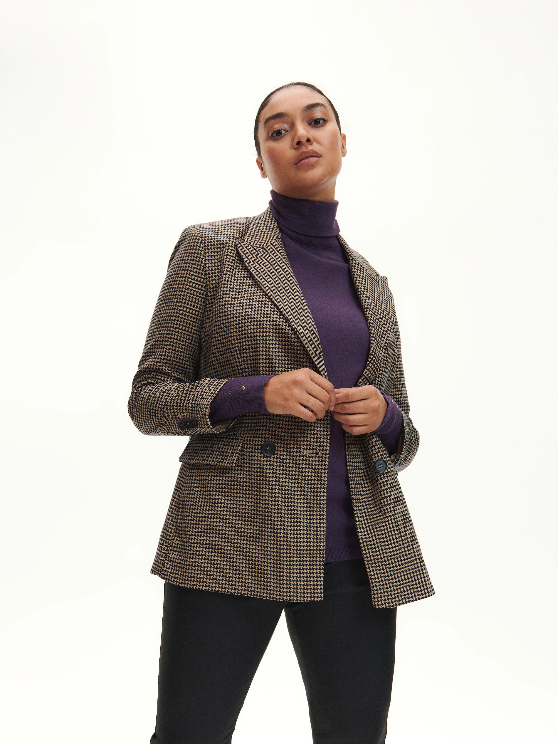 Az irodai dress code és a réteges öltözködés magától értetődő alapkombinációja a blézer vagy kosztüm kötött felsőrésszel párosítva. Ez utóbbi legyen garbó vagy magas nyakú pulóver, lehetőleg gyapjúból, kasmírból vagy alpakából. Fontos szem előtt tartani, hogy ezeknél az összeállításoknál mindig a blézer vagy a kosztüm a „főszereplő”, az alatta viselt felsőrész tehát legyen letisztult, egyszínű, árnyalatban harmonizáló vagy kontrasztot adó, egyszerű kötésmintával készült darab, mely semmiképp sem akarja túllicitálni az öltözék többi elemét. Az összhatás így nem lesz kevésbé sikkes, mintha blúzt vagy inget viselnél, viszont értelemszerűen jobban melegít.