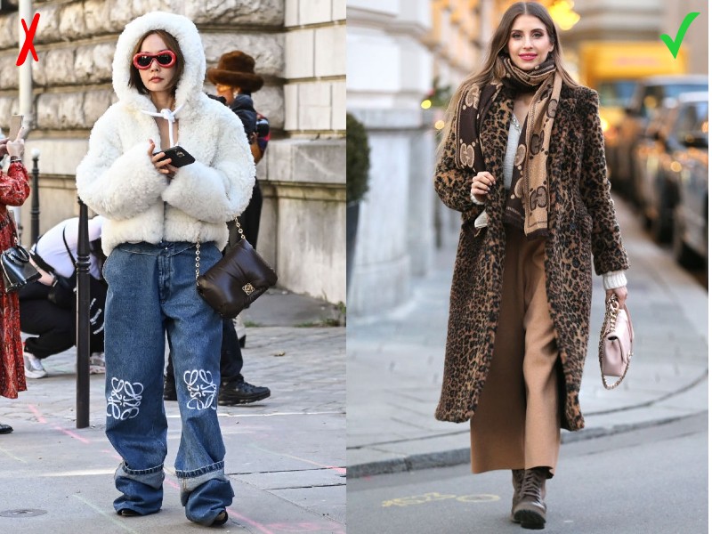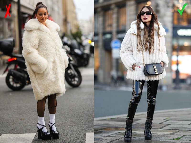 A műszőrme kabát jellegéből adódóan kétségkívül jobban mutat szűkebb szabású holmikkal párosítva. Ha mégis bő ruhadarabokkal kombinálnád, lehetőleg válassz rövid szálú, egyenes, határozottabb szabásvonalú, és minimum combközép alá érő vagy annál hosszabb bundát!
