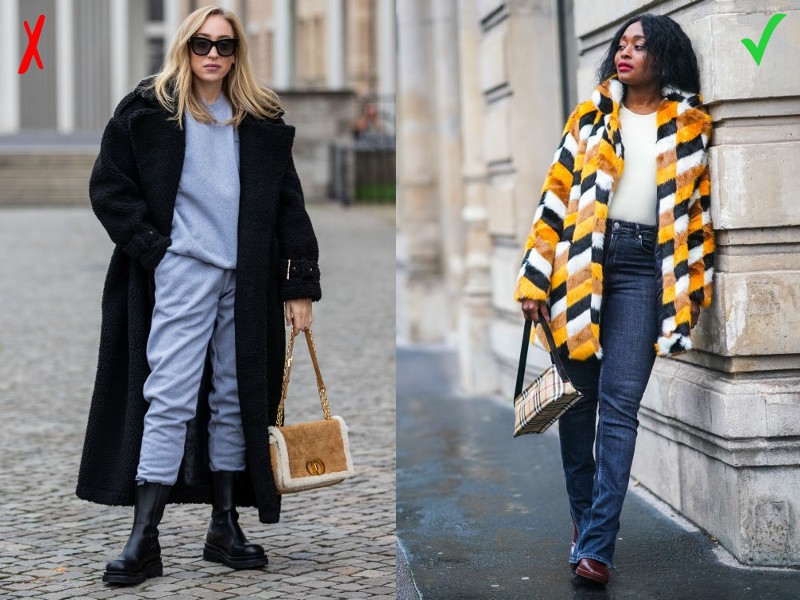 A műszőrme kabát alapvetően elegánsabb holmi. Ebből adódóan a kifejezetten sportos darabokkal, például melegítővel egyáltalán nem mutat jól. Stílusban innentől „felfelé” viszont szinte bármivel viselhető, a basic top-farmer párosítástól kezdve egészen az alkalmi ruhákig terjedő skálán.