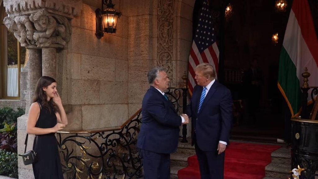 Balra Orbán Flóra (pillanatkép Orbán Viktor FB-videójából)