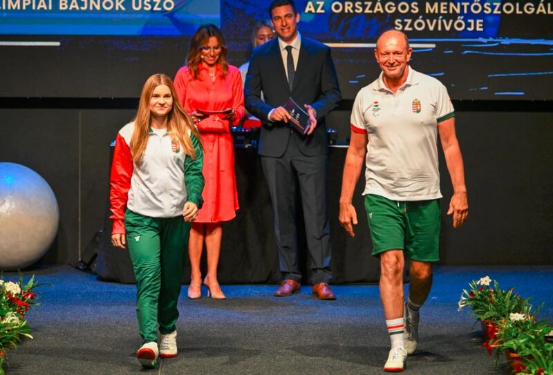 Papp Bianka paralimpiai úszó és Győrfi Pál, az Országos Mentőszolgálat szóvívője – Fotó: MTI/Illyés Tibor