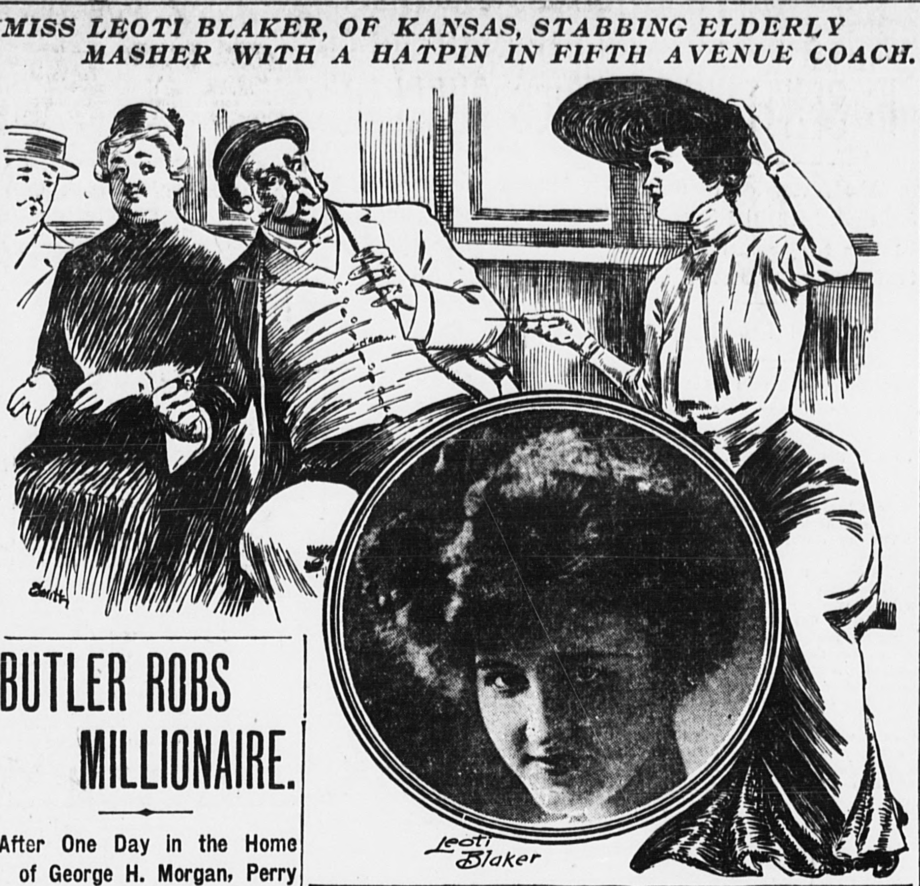 Leoti Blaker kalaptűvel tart sakkban egy zaklatót (forrás: Wikipedia)