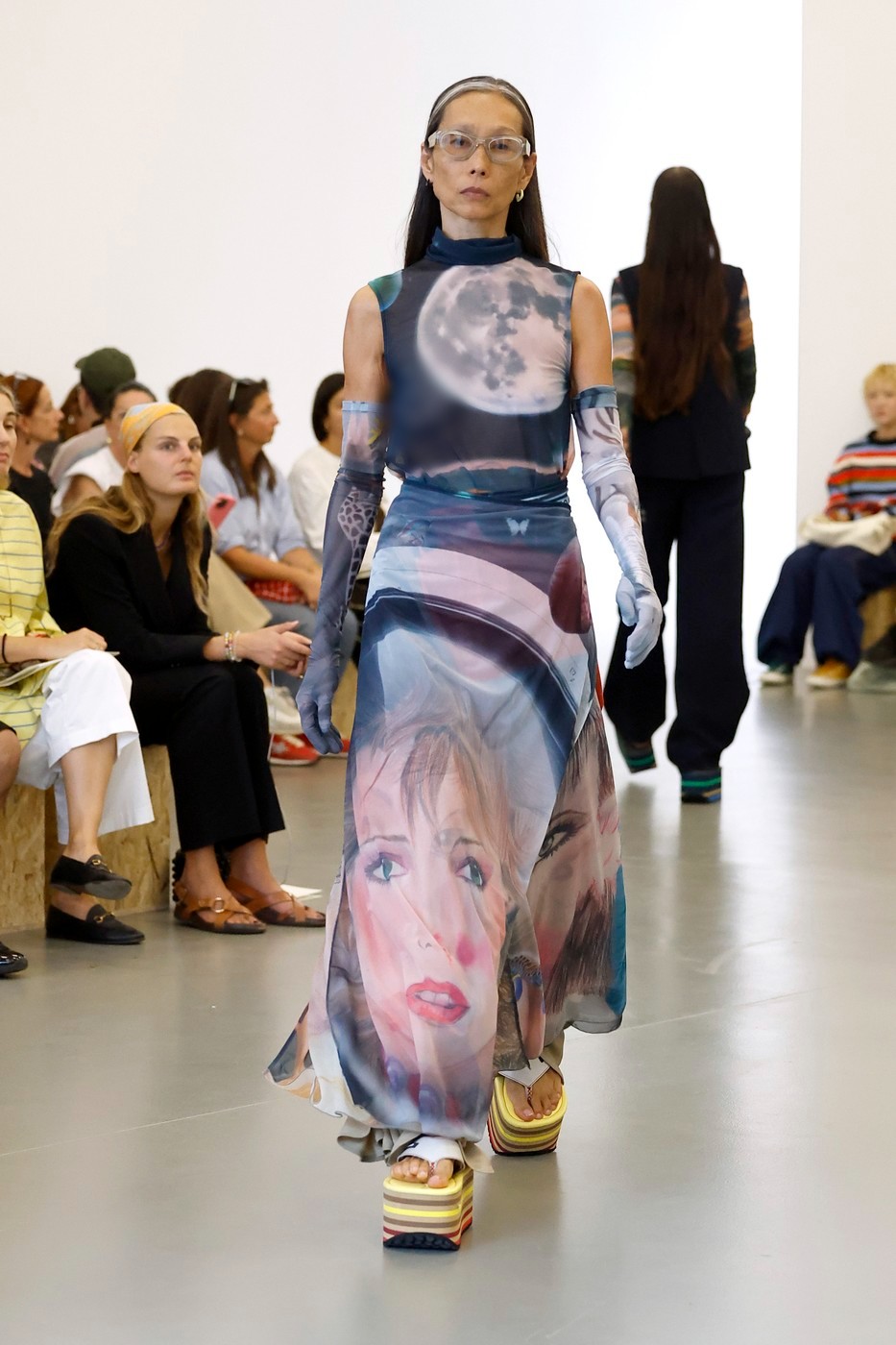 Fémhatású ruhaanyagok, kristályok, hálók, flitterek ragyogták be ezüstfénnyel az olasz divatfőváros kifutóit, az irányzat „csúcsmodellje” pedig kétségkívül a Prada tükrökkel díszített kreációja volt. Az ezüstös csillogás tehát szintén fontos trend lehet majd a 2025-ös tavaszi-nyári idény divatjában.