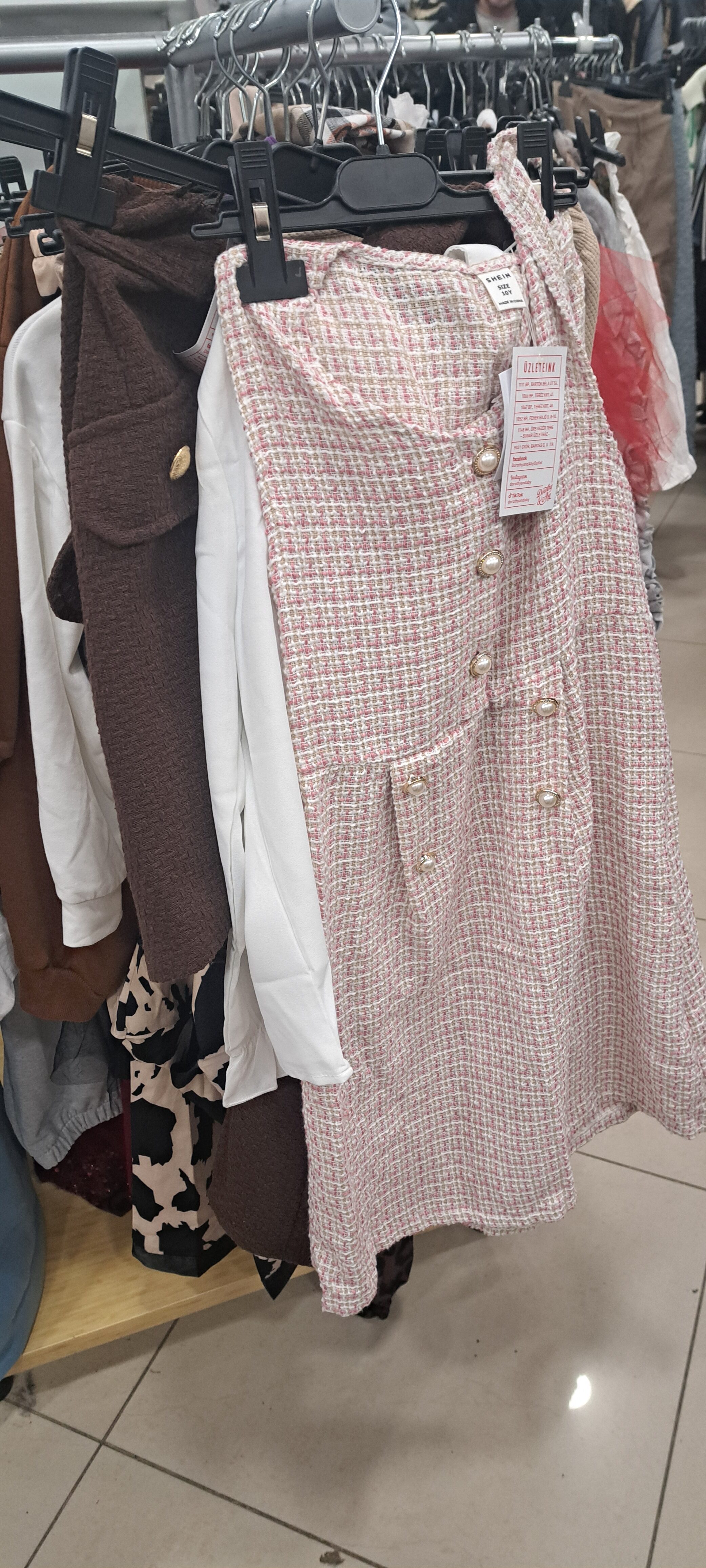 Kolléganőnk már kezdettől fogva felhívta rá a figyelmünket, hogy eleve kissé gyanúsnak látja az üzlet belsejét és a vállfákat is a megjelent TikTok-videók alapján, így fokozott kíváncsisággal indultunk el a helyszínre. Akkor még nem tudtuk, hogy időközben eszkalálódik a botrány, és kiderül: valójában csalás történt. Pontosabban „gazdasági csalás” vagy éppen „versenytárs utánzása” – hogy melyik jogi terminus lesz helytálló, egyáltalán valamelyik igaznak bizonyul-e, az idővel kiderül. Az azonban biztos, a Shein cáfolja, hogy üzletet nyitott volna Magyarországon.