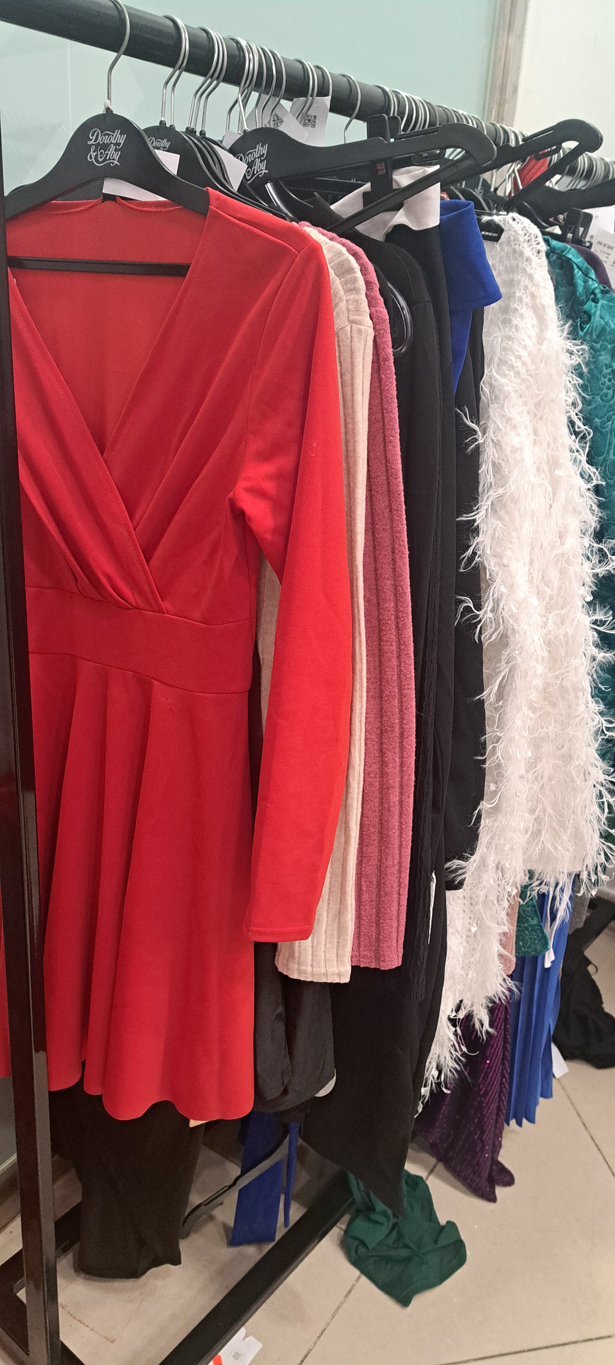 Ahhoz sem kell különösebben szemfülesnek lenni, hogy az ember azonnal kiszúrjon néhány egészen vad furcsaságot. Rengeteg holmi, de tényleg, szinte az összes ruhadarab SHEIN feliratú vagy felirat nélküli vállfa helyett Dorothy&Aby feliratú vállfán lóg a sorban. Az árcédulák, melyeken egyébként nem is olyan alacsony számok díszelegnek – egy aranyszínű nadrág ára például 4990 forint, míg egy pufi mellényé 9990 forint – egyik oldalukon az árat mutatják, másik oldalukon pedig a Dorothy&Aby üzleteinek listáját és a cég elérhetőségét. És hogy ez csupán egy suta kivitelezési-spórolási ötlet, egy különös marketinges ügyetlenség vagy az abszolút véletlen műve? Azt akár mindenki eldöntheti maga is, mi sem állítunk többet annál, mint hogy nagyon különös látvány ez akkor, ha az ember egy nemzetközi hírű és merőben más elnevezésű márka üzletébe érkezik…