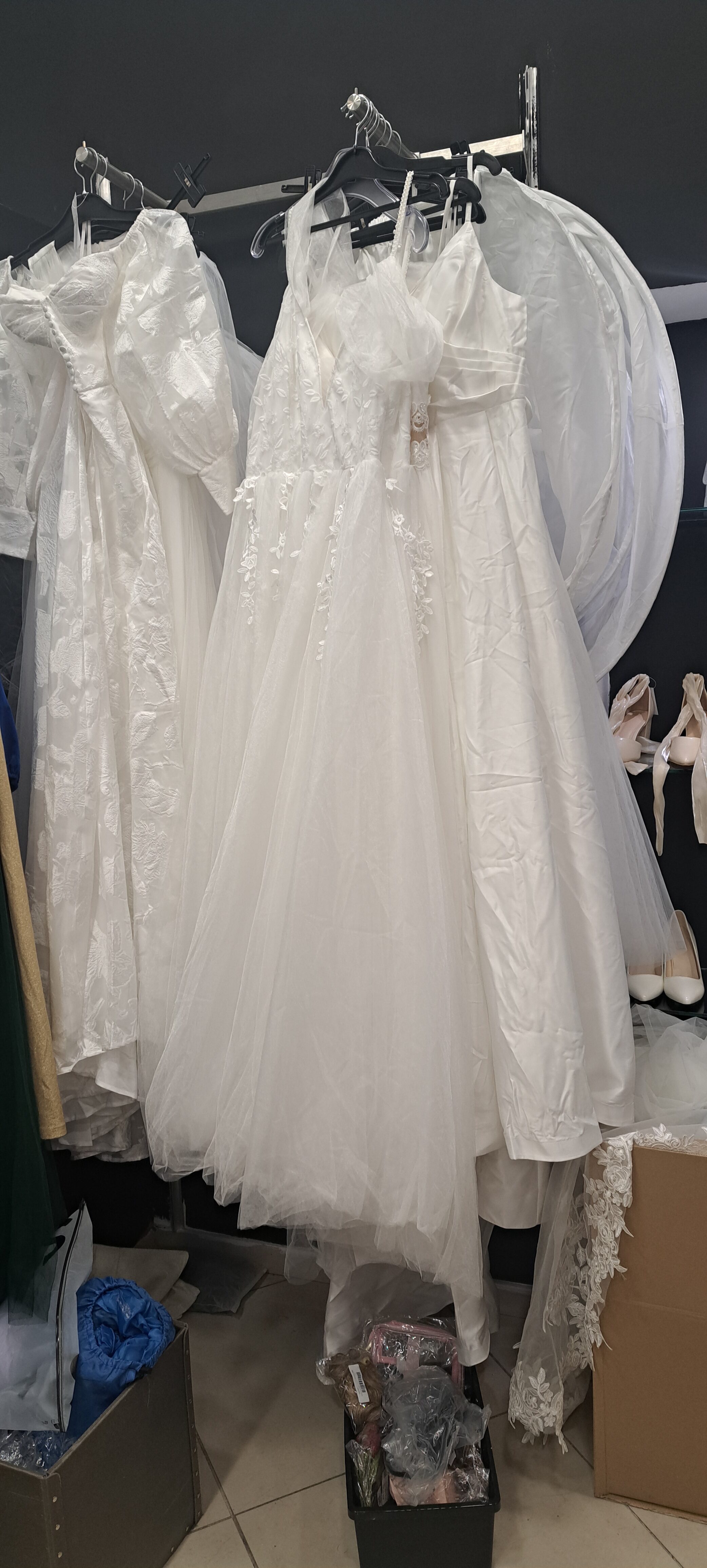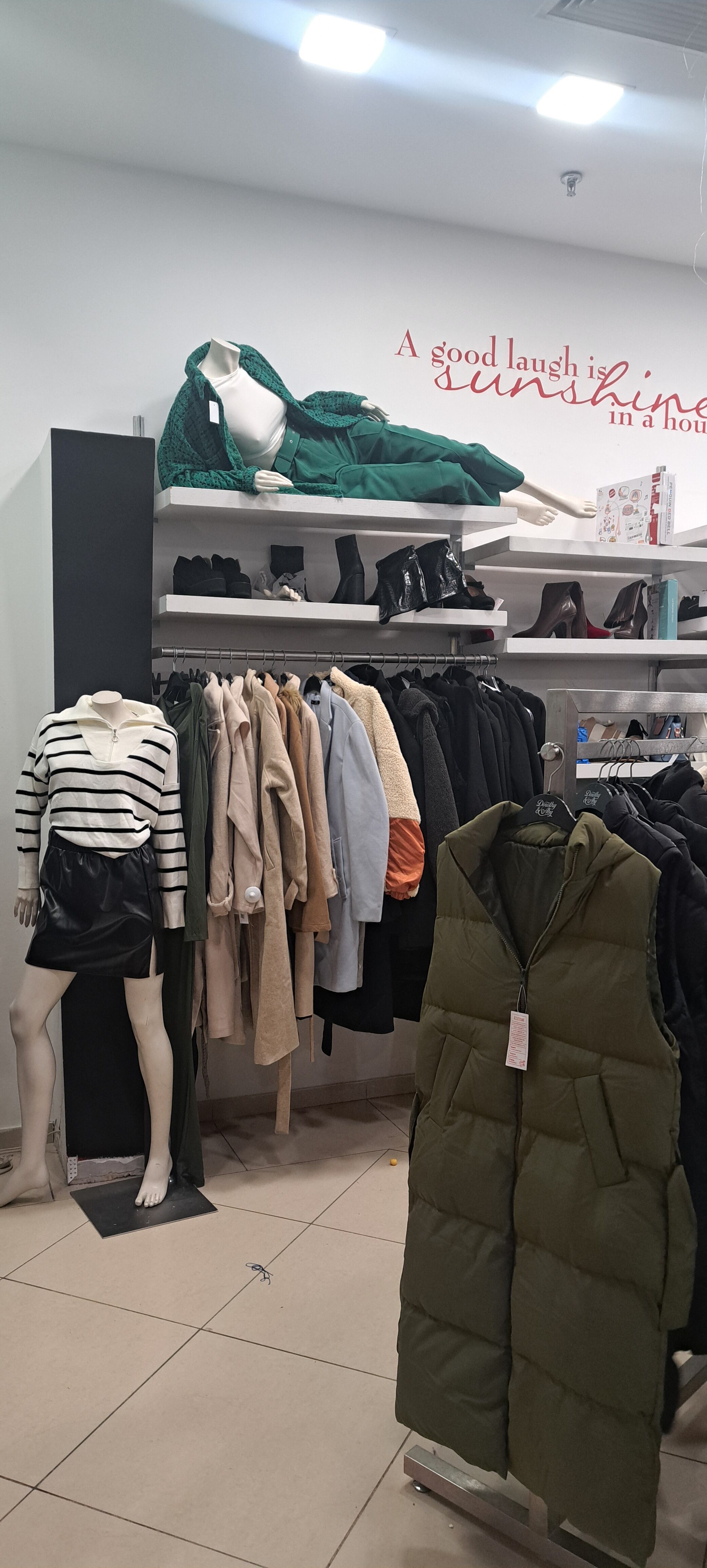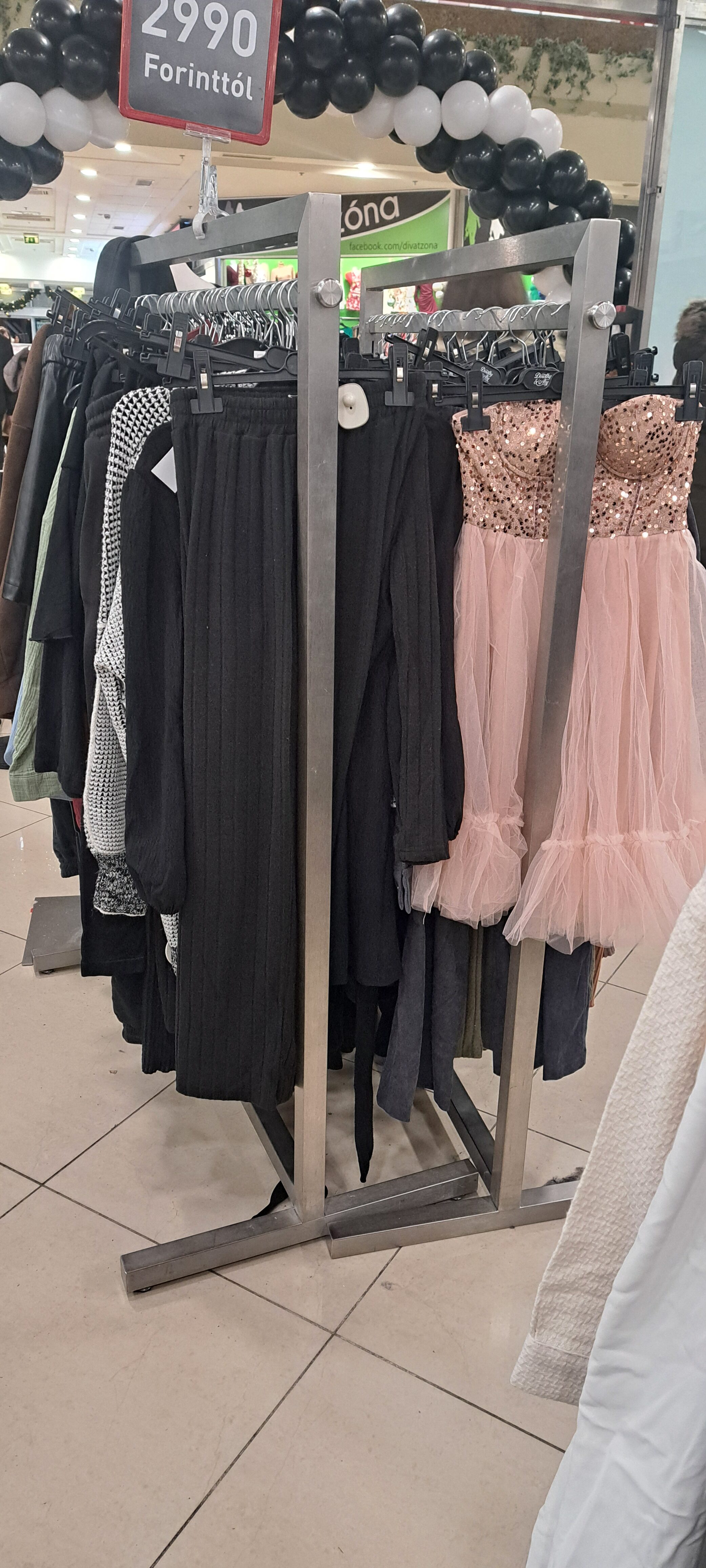 Az üzletbe érkezve az első benyomást nagyjából ez a szópár írja le legjobban: rendezetlen káosz. Persze mindez lehetne a nagy érdeklődés és a trehány nézelődők eredménye, azonban kár lenne rájuk fogni a látványt. Világmárka megnyitója utáni csillogásnak halvány nyoma sincsen, ahogyan munkatársaknak sem: két fiatal áll csupán a kasszánál, akik egymással beszélgetnek és éppen pénzt számolnak. Színek, méretek stílusok vagy fazonok szerinti kategóriákat is nehéz találni, bár a kabátok valóban nagyjából egy kupacban sorakoznak a vállfákon, ahogyan a néhány menyasszonyi ruha (?), valamint a látványosabb, flitteres és csillogó maxik és minik is egymás mellett találhatók.
