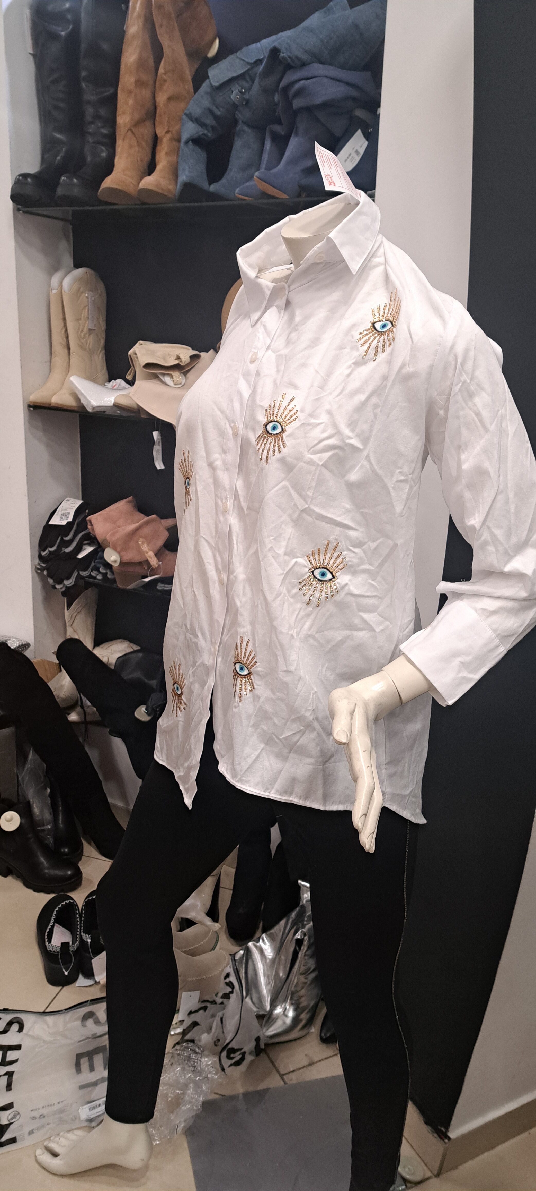 Az üzletbe érkezve az első benyomást nagyjából ez a szópár írja le legjobban: rendezetlen káosz. Persze mindez lehetne a nagy érdeklődés és a trehány nézelődők eredménye, azonban kár lenne rájuk fogni a látványt. Világmárka megnyitója utáni csillogásnak halvány nyoma sincsen, ahogyan munkatársaknak sem: két fiatal áll csupán a kasszánál, akik egymással beszélgetnek és éppen pénzt számolnak. Színek, méretek stílusok vagy fazonok szerinti kategóriákat is nehéz találni, bár a kabátok valóban nagyjából egy kupacban sorakoznak a vállfákon, ahogyan a néhány menyasszonyi ruha (?), valamint a látványosabb, flitteres és csillogó maxik és minik is egymás mellett találhatók.