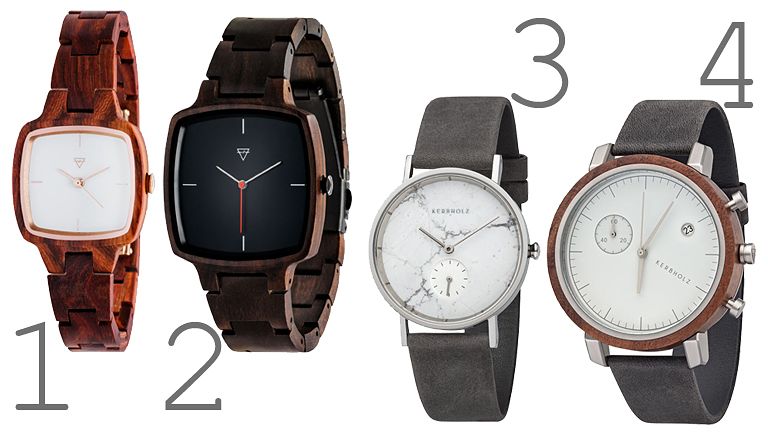 A természet kedvelői akár fából készült típusok közül válogathatnak. Vannak, amelyeknél még az óraszerkezetet rejtő tokot is a nemes anyaggal vonták be, de gyakori, hogy bőrrel kombinálják a karóra kialakítását. A nőies és férfias jegyek itt is tetten érhetők, a fa színének élénksége, illetve sötétsége, illetve a számlap nagysága, finomsága szépen alakítja a végső megjelenést.