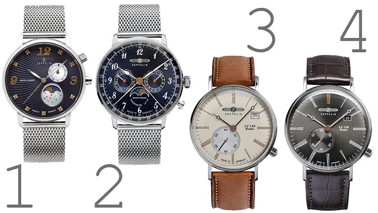 1. Holdfázisos kői karóra strukturált számlappal, svájci Ronda szerkezettel, hálós szíjjal – Zeppelin Luna – 7637M-3